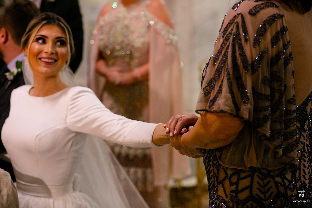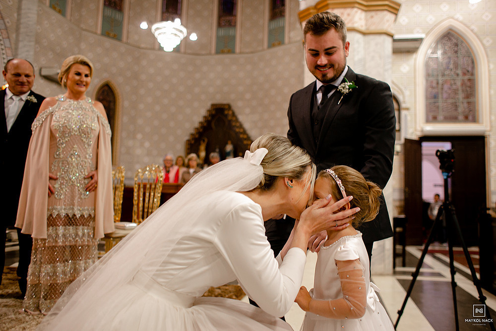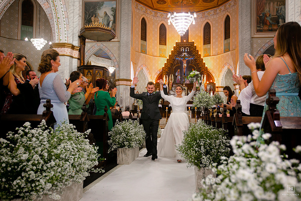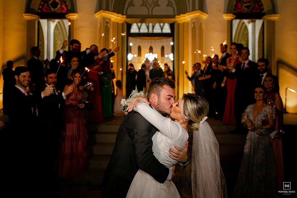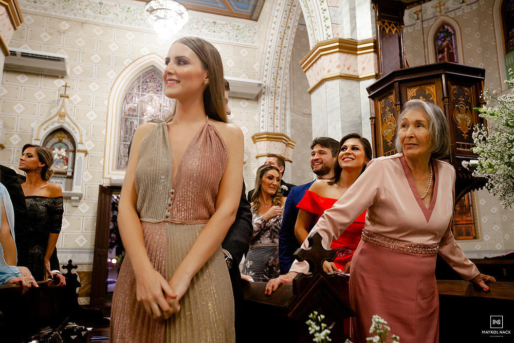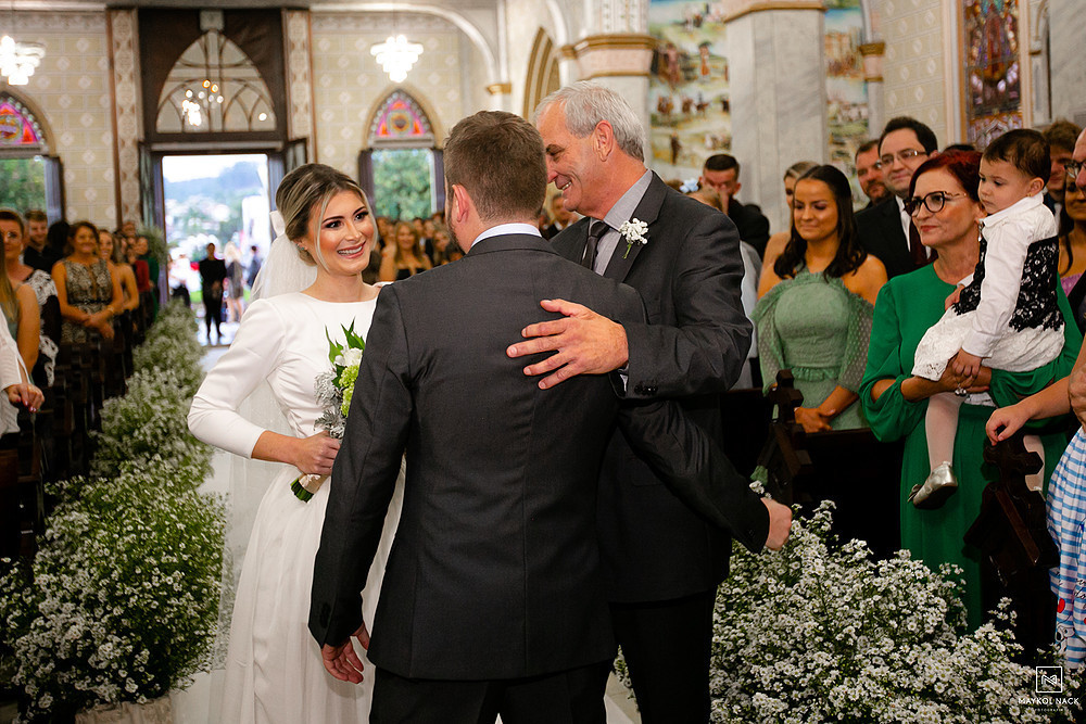 A cerimônia na Igreja Matriz Nosso Senhor do Bonfim, em Braço do Norte/SC, começou no final do dia, e terminou ao anoitecer. Um momento muito esperado, que foi marcado por sorrisos e lágrimas de alegria. É só conferir a expressão da Karol e do Edu após eles trocarem as alianças. O sentimento fala mais alto, e o sorriso vem de forma espontânea e contagiante.