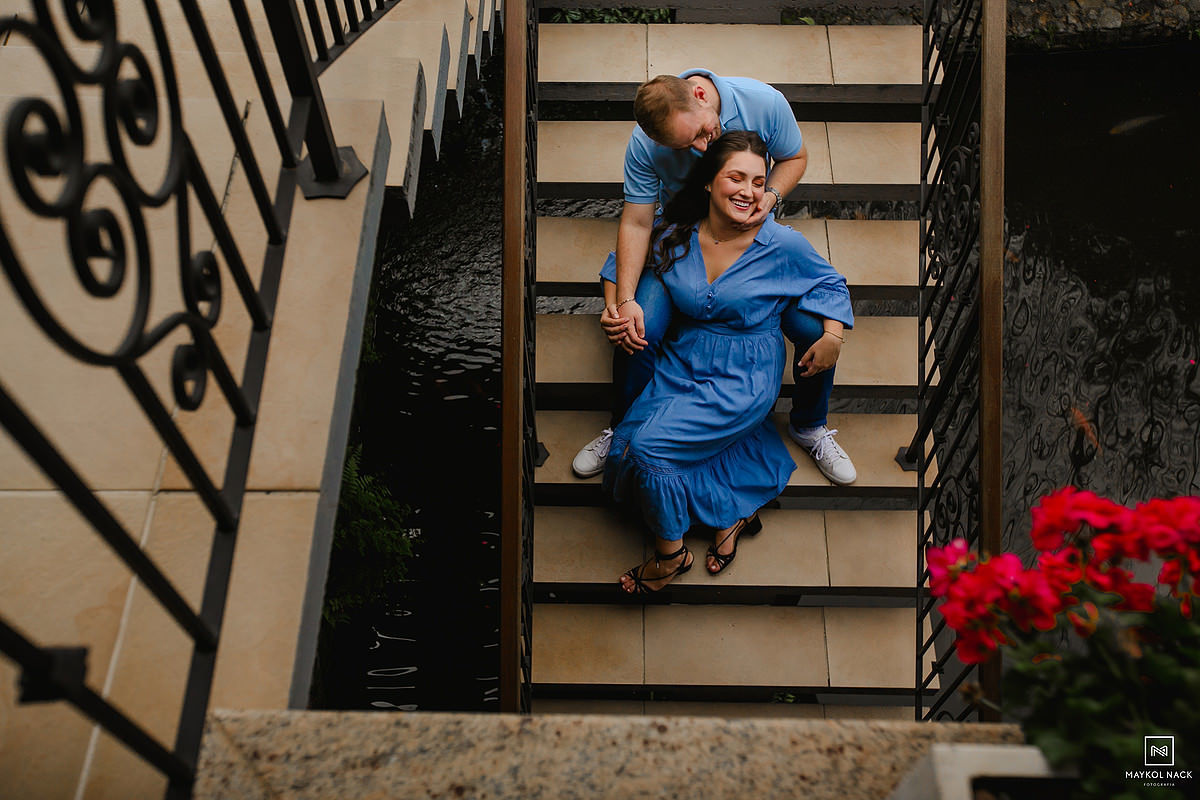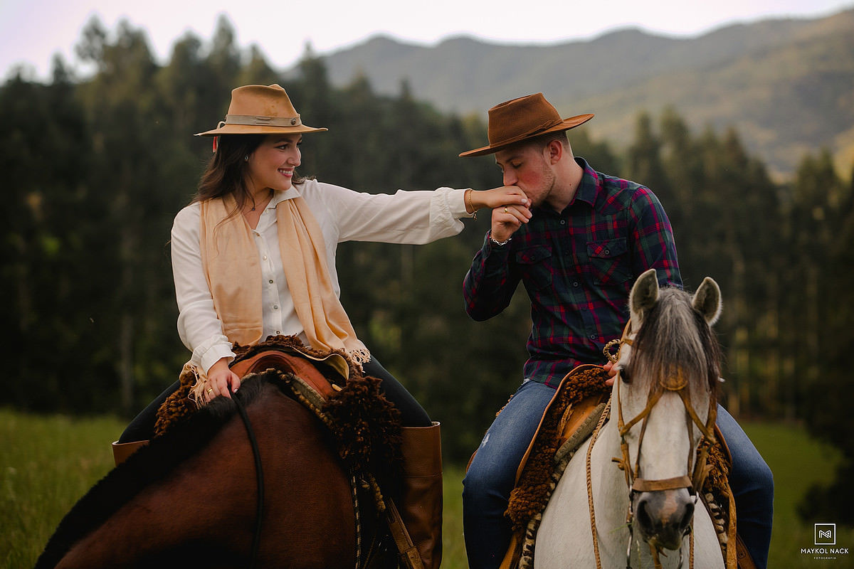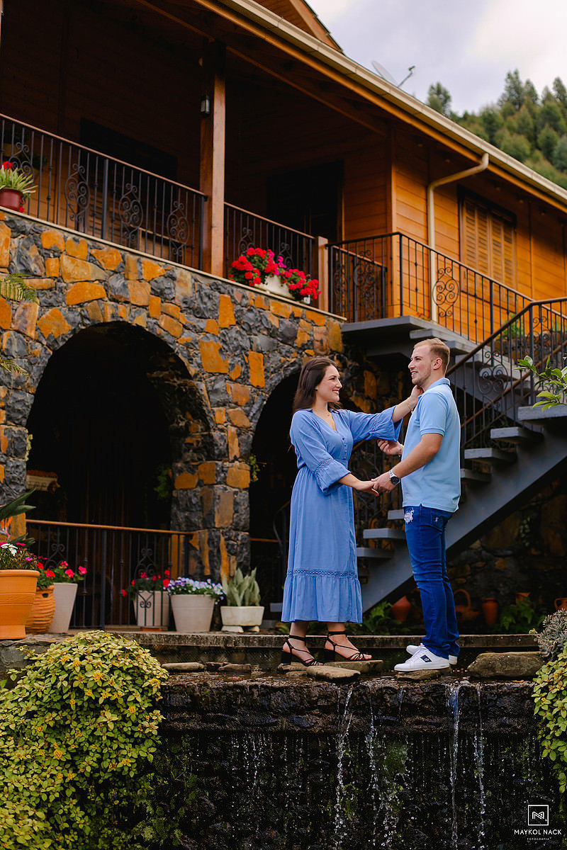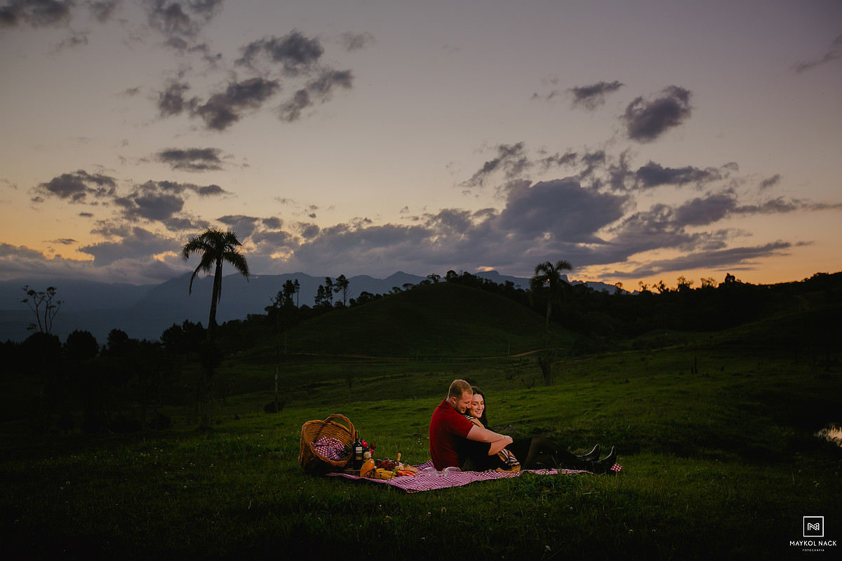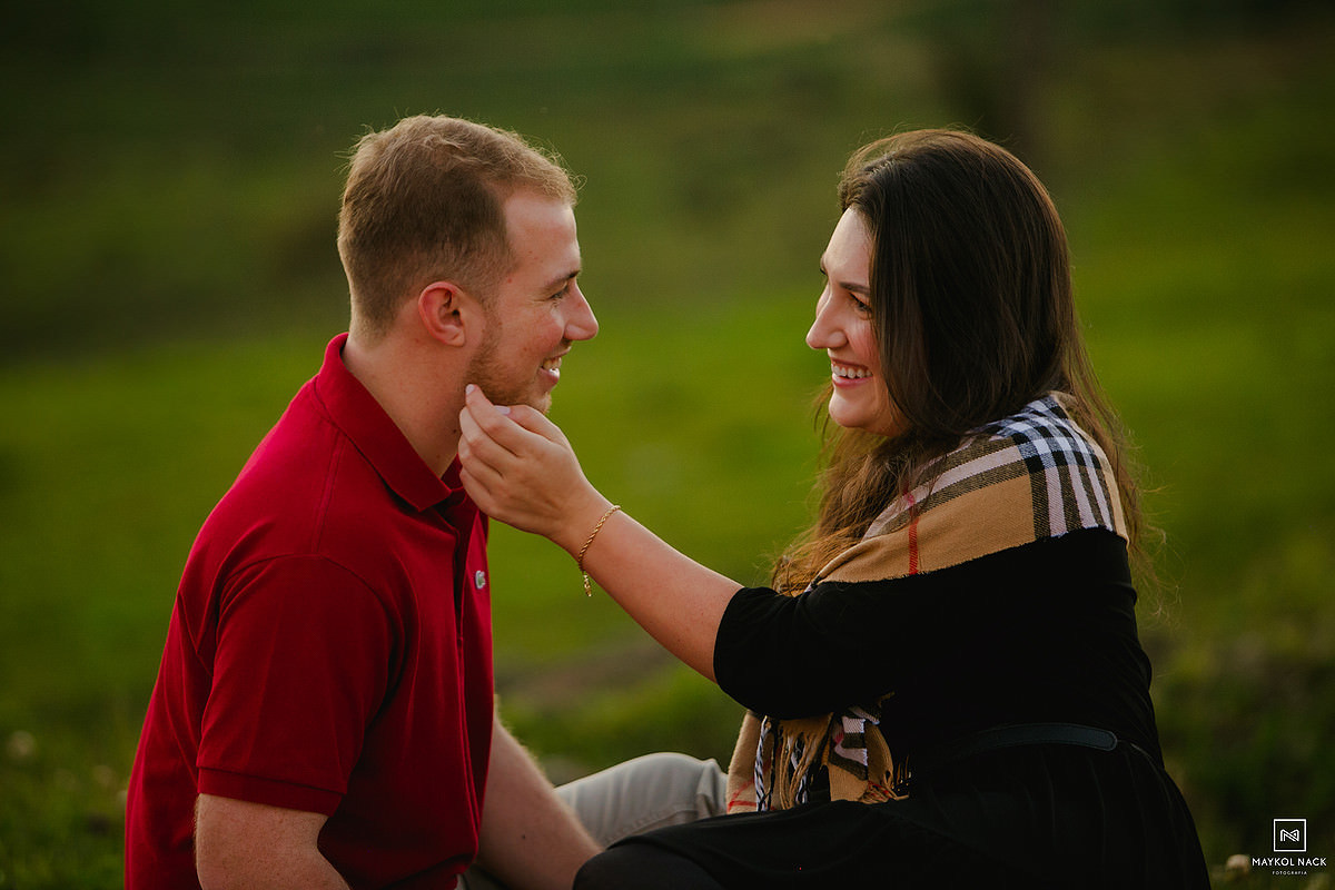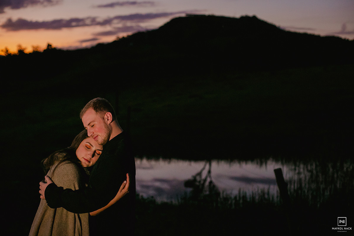A Luize e o João são assim. Dignos exemplos, raros, de pessoas que a conexão acontece de forma rápida e intensa. Nós nem tínhamos chegado no local do ensaio ainda para encontrá-los e já sentíamos o quanto essa sessão pré-casamento seria leve, romântica e divertida. Pessoas de um carisma incrível, que você fica na dúvida se fotografa ou se prefere puxar um assunto e passar horas conversando. Não posso deixar de falar das famílias dos dois, que também nos receberam em Anitápolis - SC, fazendo com que nos sentíssemos em casa. Eu sempre falo que receber bem alguém é uma arte, receber bem e com alegria é um dom para poucos.