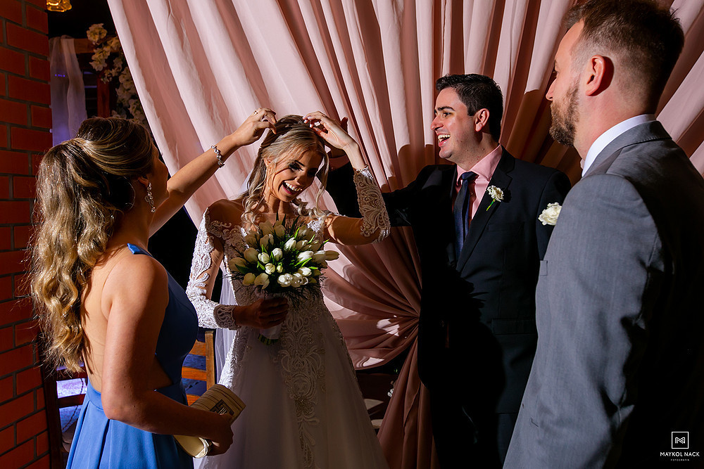 Uma cerimônia emocionante, com momentos de agradecimentos, momentos de votos, momentos de relembrar a história dos dois, desde suas infâncias, até o instante do casamento. Isso, com certeza, fez com que todos sentissem sua real importância dentro da história deles.