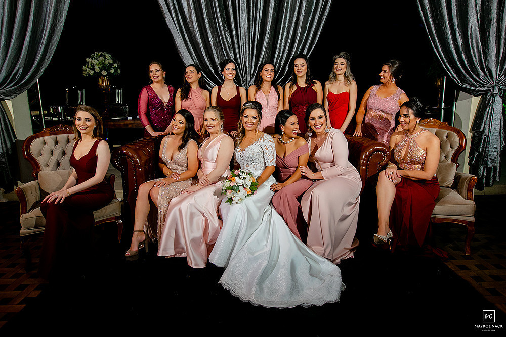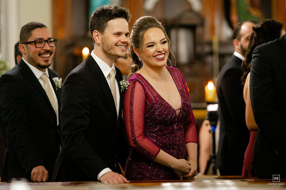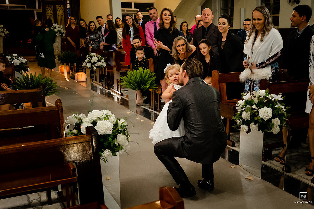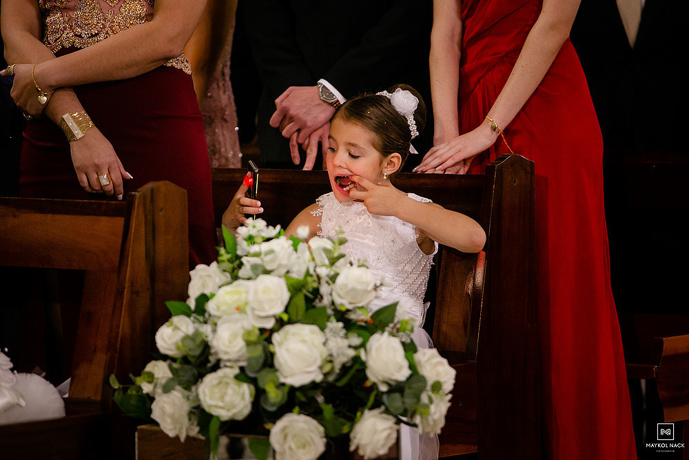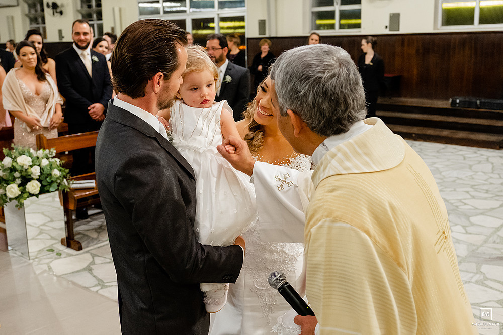 Desde os preparativos, acompanhados pela família e padrinhos, já deu pra sentir que a noite seria histórica. A cerimônia na Igreja Matriz São Marcos, teve muitos momentos incríveis, em especial, quando a Fernanda e o Diego foram buscar a Maitê, filha deles, no meio do corredor da Igreja, pois ela ficou lá parada com as alianças, olhando para todo mundo e esqueceu de ir até a frente do corredor hahaha.