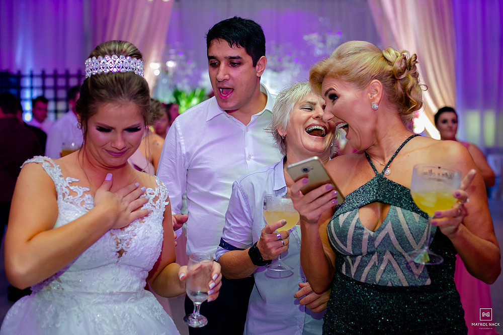 A festa da Kelin e do Alan já começou com tudo, afinal, eles entraram na festa de casamento de moto. Isso mesmo, os dois, chegando de moto para o delírio dos convidados. Não preciso nem afirmar que a festa rolou com muita animação depois dessa entrada.